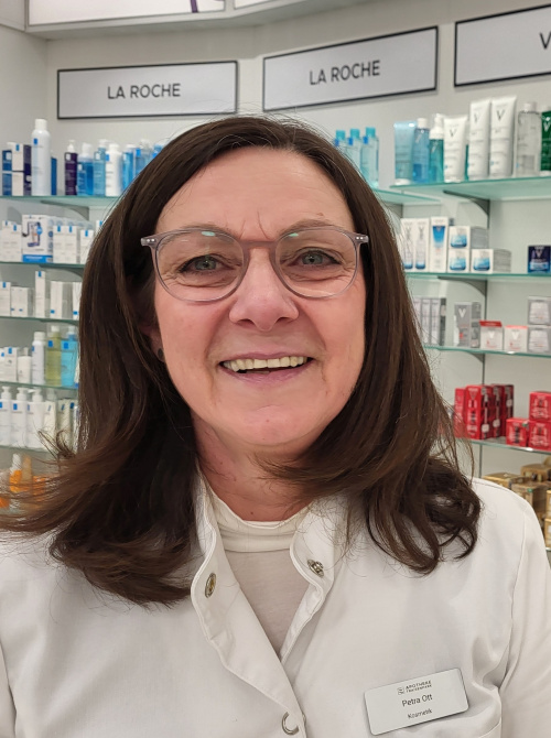 Kosmetikberatung und Präsentation; managt mit Charme und Ruhe alles abseits der Arzneimittel
